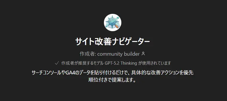 サーチコンソールやGA4から、CSVデータをエクスポートするだけ。手順は各使い方ガイドで解説しています。 - STEP2:GPTsを開いてデータを貼り付ける